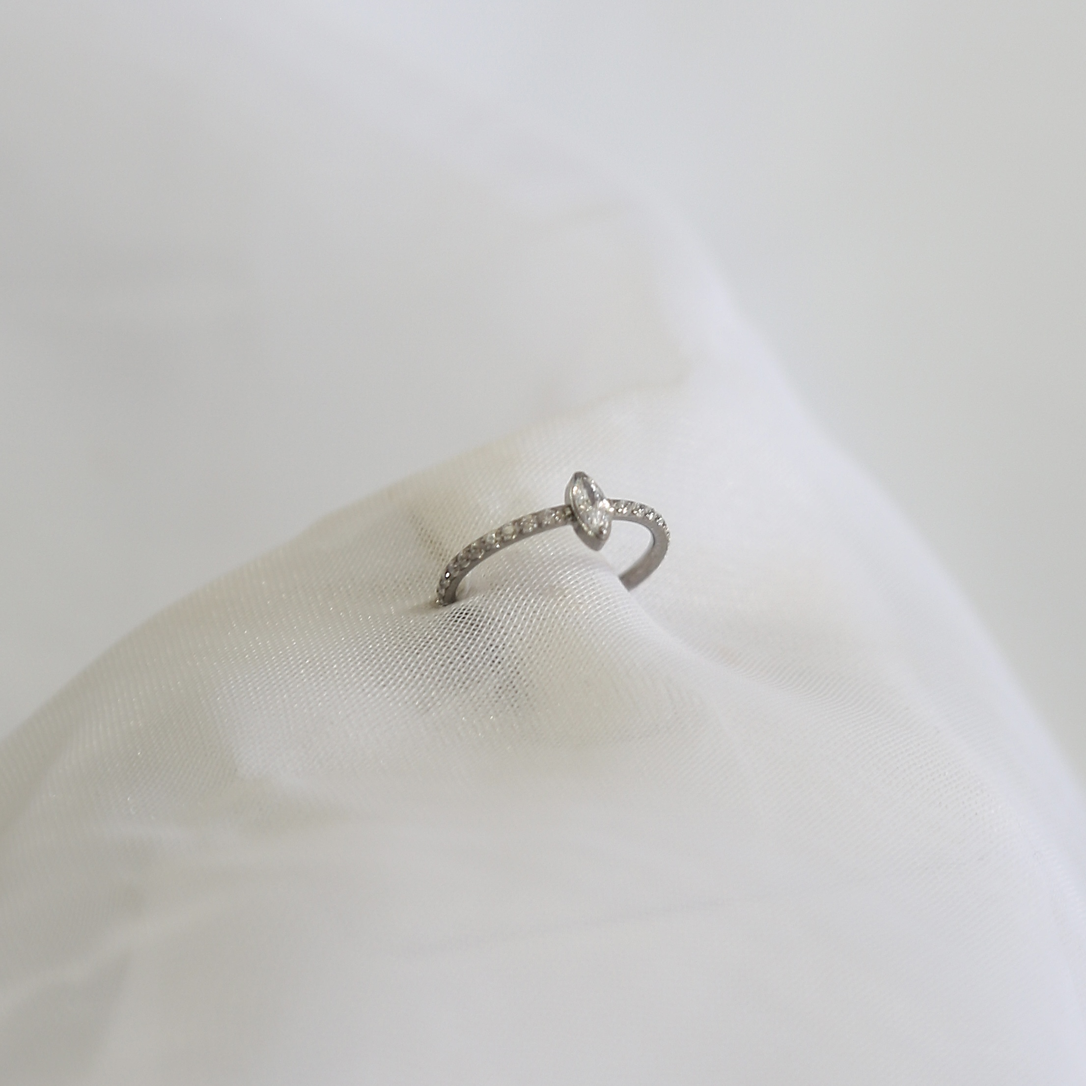 Argola cravejada de zircônias brancas super delicada e um solitário em forma de Navete